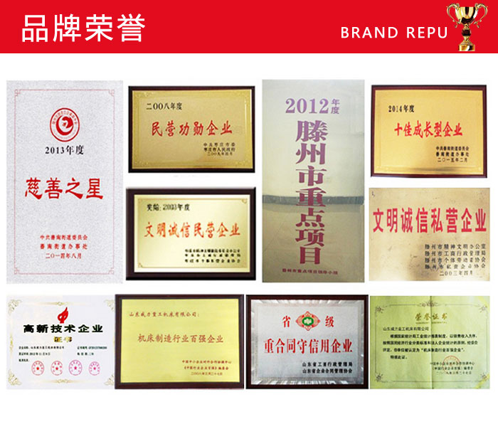 山東威力重工機床有限公司歷經(jīng)數(shù)十年年的改革與發(fā)展,威力重工取得了不計其數(shù)的榮譽,包括政府組織機構評選頒發(fā)的各類證書,媒體和市場研究機構的獎項,公眾通過正式和非正式渠道對企業(yè)的贊許等等。這些榮譽是社會和公眾對山東威力重工機床有限公司的獎勵,是廣大消費者對威力重工產(chǎn)品的認可,是山東威力重工優(yōu)良口碑的見證。