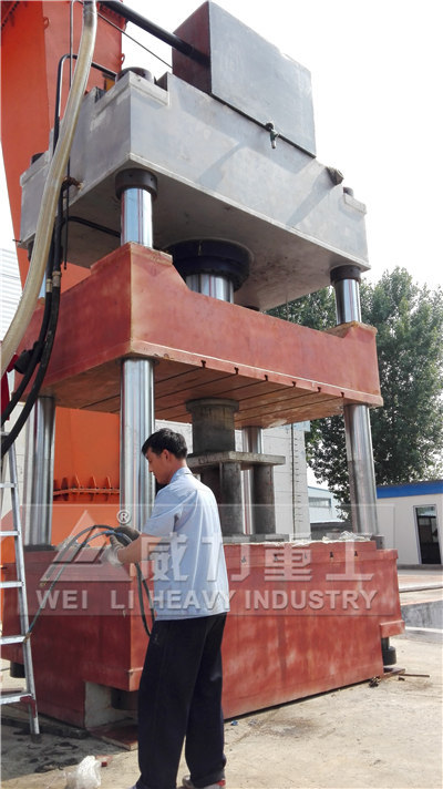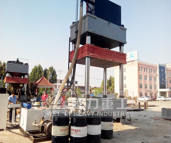 液壓機(jī)由主機(jī)及控制機(jī)構(gòu)兩大部分組成。液壓機(jī)主機(jī)部分包括機(jī)身、主缸、頂出缸及充液裝置等。動(dòng)力機(jī)構(gòu)由油箱、高壓泵、低壓控制系統(tǒng)、電動(dòng)機(jī)及各種壓力閥和方向閥等組成。動(dòng)力機(jī)構(gòu)在電氣裝置的控制下,通過泵和油缸及各種液壓閥實(shí)現(xiàn)能量的轉(zhuǎn)換,調(diào)節(jié)和輸送,完成各種工藝動(dòng)作的循環(huán)。液壓缸:將液壓能轉(zhuǎn)化為機(jī)械能液壓傳動(dòng)是利用液體壓力來傳遞動(dòng)力和進(jìn)行控制的一種傳動(dòng)方式。液壓裝置是由液壓泵,液壓缸,液壓控制閥和液壓輔助元件。山東威力重工機(jī)床有限公司根據(jù)客戶需求定制非標(biāo)液壓機(jī)。如下圖參考