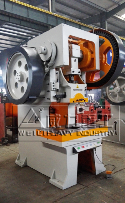 開式固定臺沖床(壓力機)為J21系列沖床。J21系列經(jīng)濟型開式固定臺壓力機是屬于薄板沖壓的通用壓力機,適用于各種冷沖壓工藝,如剪切、沖孔、落料、彎曲和淺拉伸工作。其結(jié)構(gòu)特點如下: ?曲軸橫向放置,齒輪為外置敞開式,維修方便;?采用組合式剛性連鎖干式氣動摩擦離合器——制動器,傳遞扭矩大,轉(zhuǎn)動慣量小,安裝、維修方便。?滑塊為一鑄造箱形結(jié)構(gòu),滑塊內(nèi)安裝壓塌式過載保護裝置,保護動作靈敏可靠,滑塊超載后,保險器壓塌破壞,從而保護壓力機的主要零部件和模具不受損壞。![]()