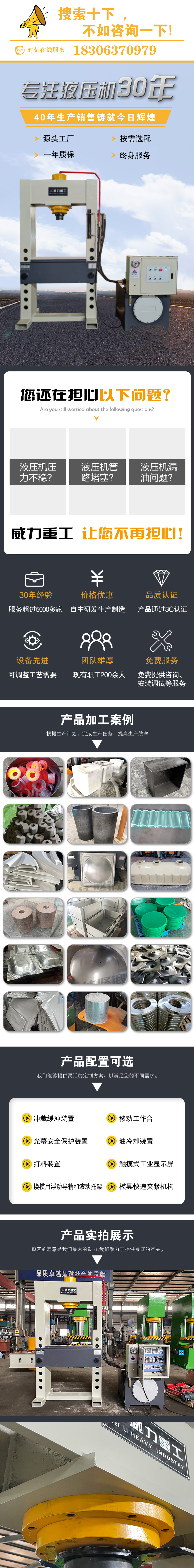 【產品描述】:30噸龍門框架式液壓機是一種高效、精準的壓力成型設備,廣泛應用于各種金屬、非金屬材料的壓制、成型和校正工藝中。其獨特的龍門框架設計和強大的液壓驅動系統,使其具有出色的穩定性和工作效率,成為現代工業生產中不可或缺的重要設備。 30噸龍門框架式液壓機采用高強度鋼材構建龍門式框架,保證了設備的穩固性和剛性。機身采用優質鋼板焊接而成,經過精細的熱處