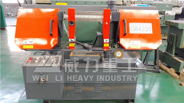 【產品描述】:GB4235臥式帶鋸床 主要特點: 切削速度液壓控制,無級調速; 導向塊結構科學合理,延長鋸條的使用壽命; 雙立柱結構,操作平穩(wěn); 鋸切穩(wěn)定,精度高; 工作夾緊采用液壓夾緊,操作方便。 產品常用名稱: 鋸床,帶鋸床,臥式帶鋸床,金屬帶鋸床,雙柱式帶鋸床,GB4235帶鋸床 。 雙立柱臥式帶鋸床 是集機、電、液為一體的半自動帶鋸床,是鋸切較大直徑的黑色金屬和有色金屬